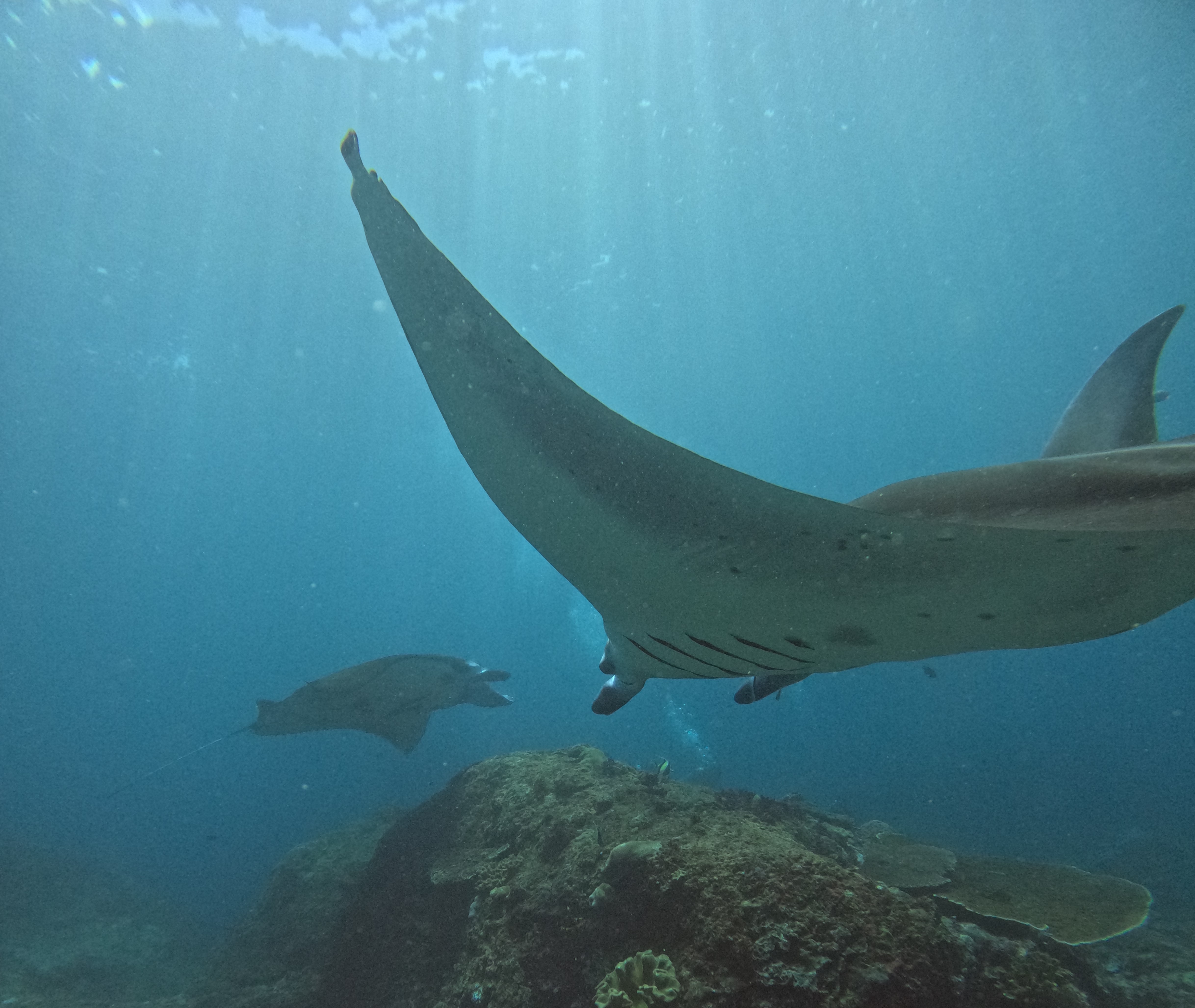 Gliding through the deep blue with majestic manta rays